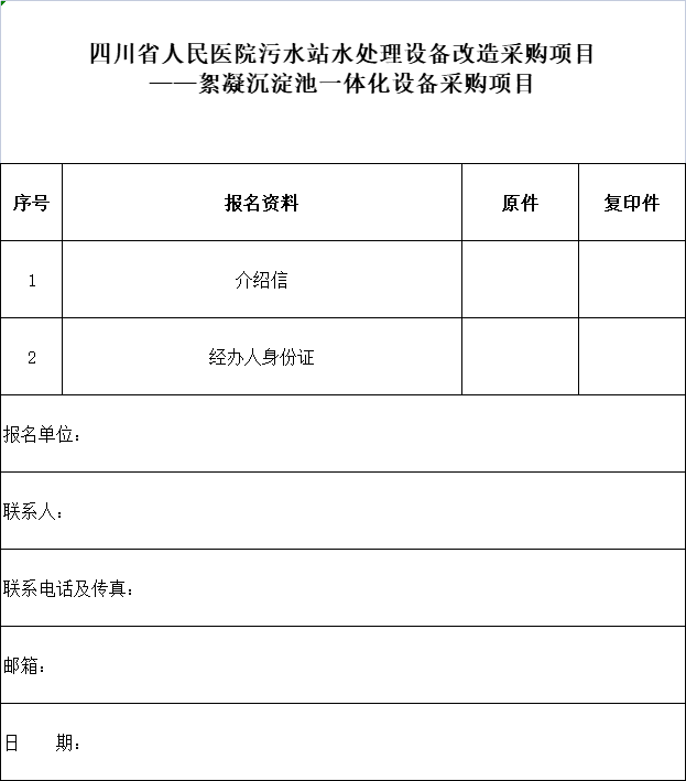 項目名稱:四川省人民醫院污水站水處理設備改造采購項目——絮凝沉淀池一體化設備采購項目(第二次)