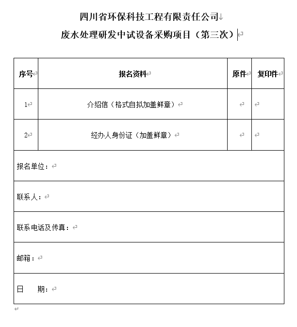 項目名稱:四川省環(huán)??萍脊こ逃邢挢?zé)任公司廢水處理研發(fā)中試設(shè)備采購項目(第三次)