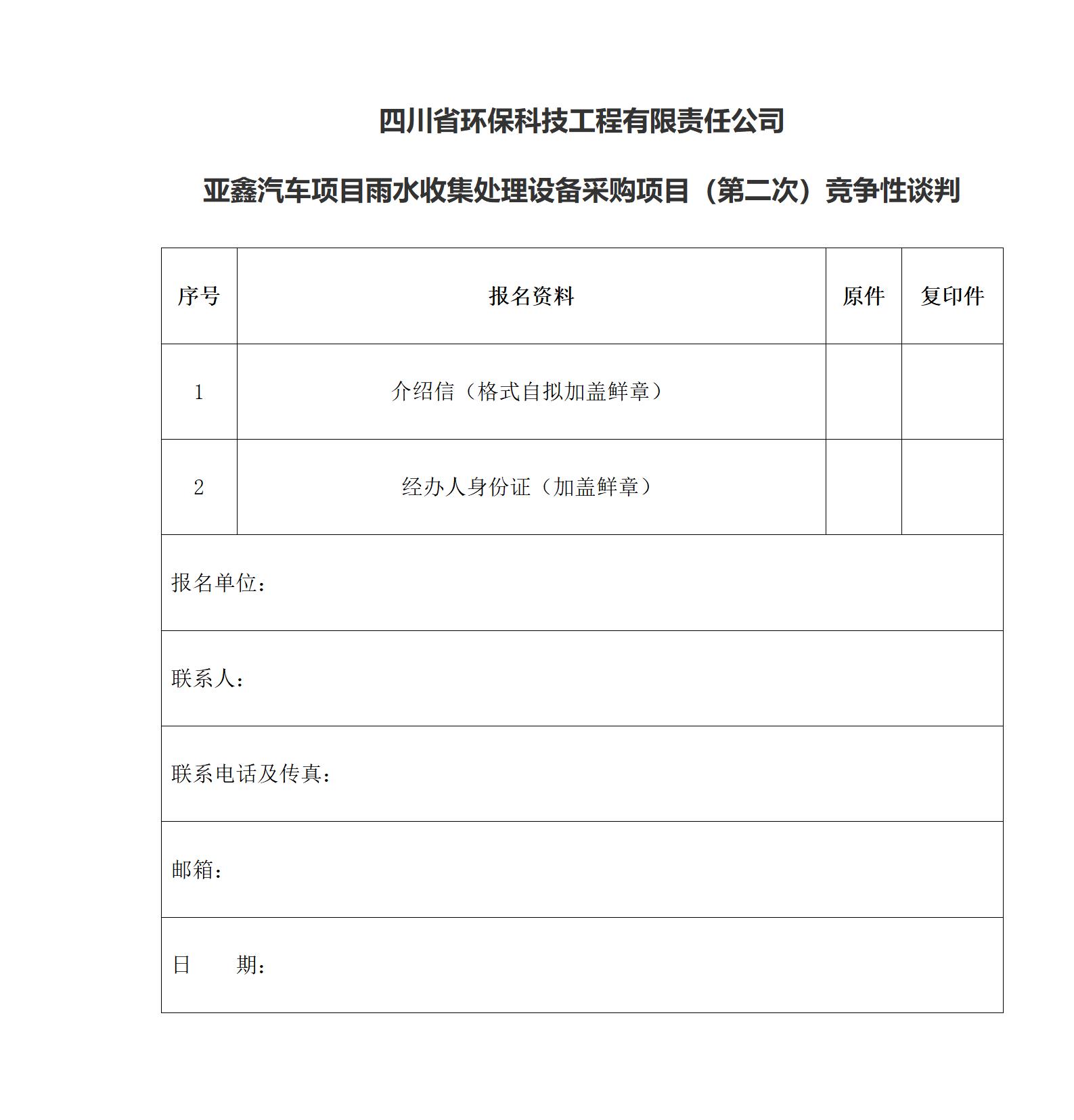 亞鑫汽車項(xiàng)目雨水收集處理設(shè)備采購(gòu)項(xiàng)目(第二次)競(jìng)爭(zhēng)性
