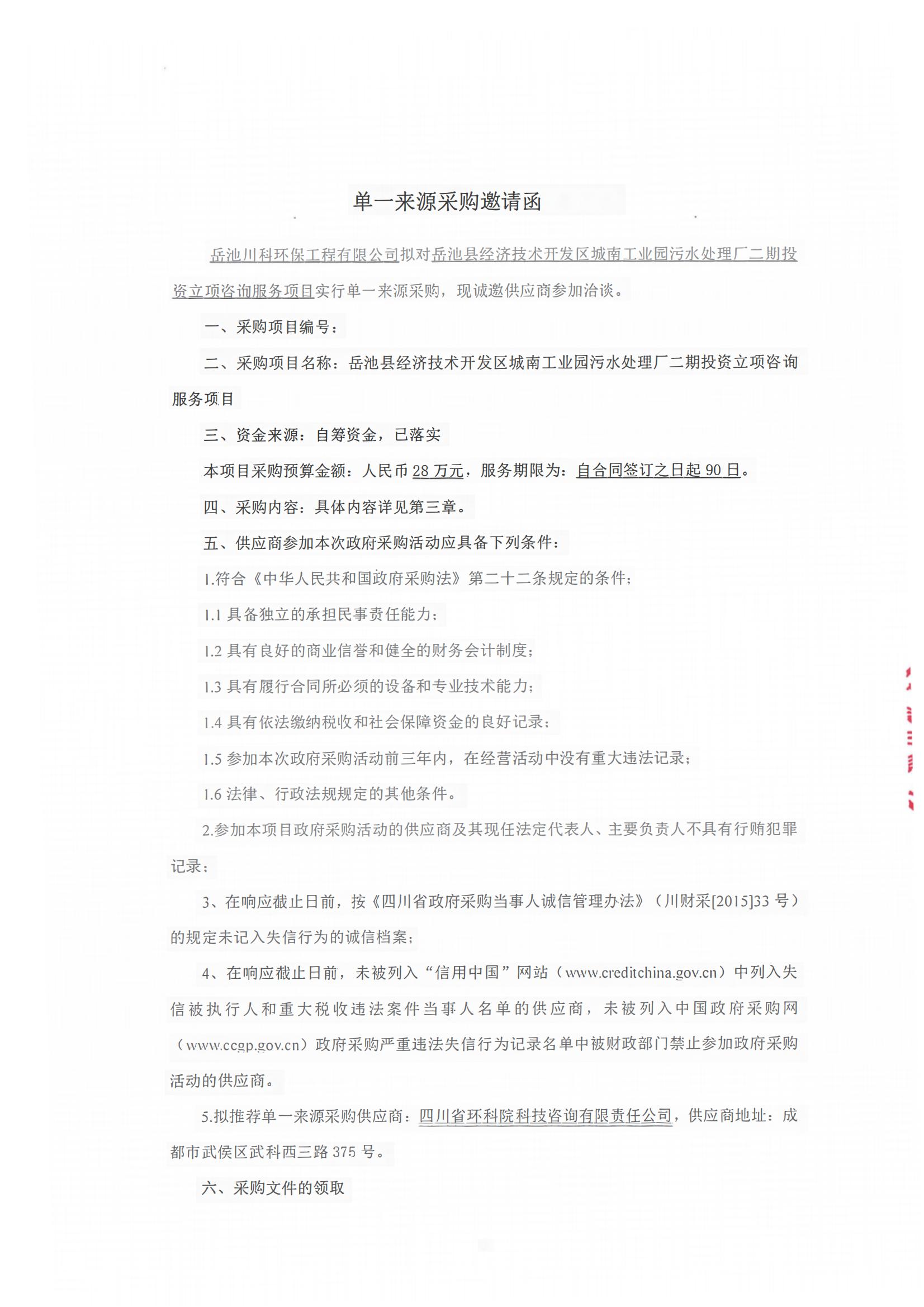 單一來(lái)源采購(gòu)邀請(qǐng)函